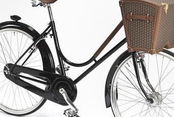 La bicyclette est très élégante avec ses poignées et selle en cuir maison. La Malle contient un nécessaire à Pique nique (Pour 2) composé de couverts et serviettes retenus par de fines sangles en cuir brun. Les autres accessoires se glissent dans des étuis adaptés.