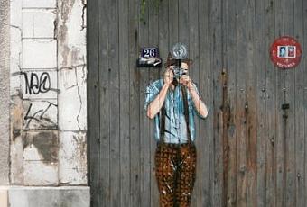 Jana & JS est un duo franco-autrichien pochoiristes dont le travail s’articule autour des mutations urbaines (immeubles en chantier, parkings etc…).C’est depuis le début 2007 qu’ils ont développé leur travail à quatre mains. Leurs créations mêlent à la fois la représentation de portraits, souvent des photographes dans des positions très réalistes ou bien certaines œuvres faisant interagir le citadin avec les éléments du décor.