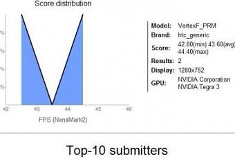 Depuis le début de cette semaine, des rumeurs faisaient état de la préparation de HTC d'une nouvelle tablette. Aujourd'hui, on a plus d'informations mais pas jusqu'à confirmer la nouvelle. Selon le résultat d'un test de Benchmarck par NenaMark2, la tablette HTC porterait le nom de Vertex HD et serait animée par un processeur NVIDIA Tegra 3 avec une résolution de 1280x752. Le peu d'informations ne nous permet pas de se fixer sur le segment du marché ciblé par HTC, les tablettes à 7, 9 ou 10 pouces.