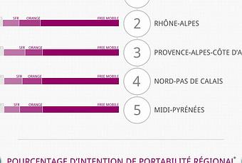La portabilité d’un numéro est la possibilité de changer d’opérateur en gardant son numéro, et ainsi éviter bien des tracas liés à un changement de numéro. L’infographie nous apprend ainsi que Free mobile a séduit les foules avec un fort taux de portabilité après son arrivée. En appuyant sur les données de l’ARCEP, l’infographie nous donne également quelques renseignements sur le monde du mobile en France, notamment le palmarès des régions les plus équipées en mobiles, ou celles les plus demandeuses de portabilités.