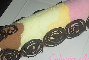 - Déposer la moitié des glaces dans un moule à bûche puis placer le boudin de pâte d'amande au milieu ensuite recouvrir de glace.