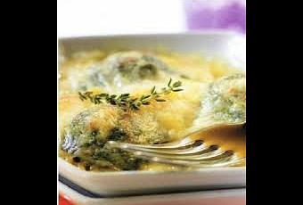 Mélanger épinards et moitié de la béchamel, ecaler les oeufs durs, les couper en deux dans le sens de la longueur et les poser sur épinards, jaune au dessus.napper avec le reste de béchamel et passer sous le grill puissance maxi pendant quelques minutes. Servir aussitot.