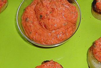 3 poivrons rouges- 10 belles feuilles de basilic- 125 g de fromage de chèvre frais- 2c. à soupe d'huile d'olive fruitée-1 c à café de piment doux en poudre- sel et poivre du moulin