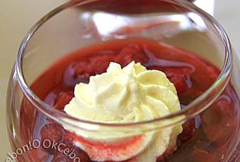 Servir en verrines accompagnées d'un peu de crème fouettée.
