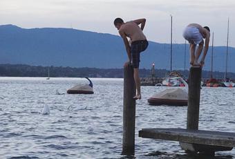 L’eau du lac à Genève est frisquette? Aujourd’hui oui mais pas si juste pour hier comme vous pouvez le constater sur ces photos prises vers 21h30 du côté du Jet d’eau. Et demain est un autre jour!