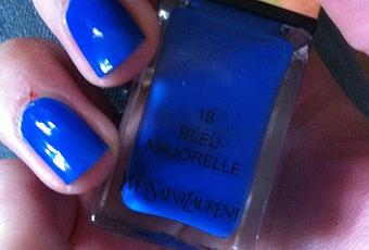L’application des laque d’YSL est une merveille. Le pinceau a un bord large mais précis qui permet une application sans bavure en deux passages. Deux couches suffisent à obtenir un laqué parfait. J’avoue avoir ajouté une troisième couche après la photo pour obtenir un bleu encore plus intense.