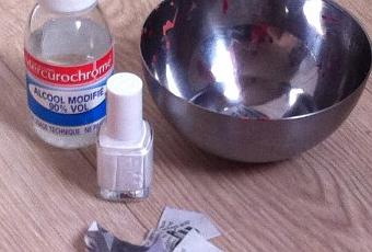 Puis, découpez des bandes de papier journal de la grosseur de vos ongles et laisser tremper quelques minutes dans un bol contenant de l’alcool à 90.