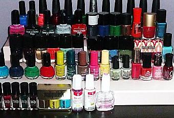 Vous voyez c'est tout simple et on voit vraiment tous les vernis. J'ai donc utilisé la partie inférieure de la box pour surélever les vernis du fond. J'ai ensuite utilisé le couvercle de la box pour surélevé mais un peu moins les vernis. Et enfin, j'en ai mis directement sur le meuble.