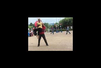 La première rencontre que j’ai faite sur l’esplanade du Palais ducal de Nevers fut une Compagnie de danse, Déviation, avec un spectacle intitulé Comme deux gouttes d’eau, un Camerounais, une Suédoise. Tout les différencie et ils en jouent, jusque dans les caractères qu’ils affichent. Tout les oppose mais, comme tout ce qui s’oppose, ils s’appuient l’un sur l’autre. Un enfant, pris au hasard dans le public, sera même appelé à la rescousse.