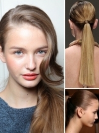Often considered as being girlie, boring and commonplace, the timeless ponytail comes back this season with gorgeous, wearable versions, perfect when temperatures heat up. From messy and effortless to severe and slicked, take a glimpse at some of the hottest summer 2011 ponytail hairstyles.Time to take advantage of your beautiful, long tresses and play with styling, trying different A-list hairstyles. Still, if there is one standby 'do to see you through the warm season, that is the classic, old faithful ponytail. We love its versatility that allows us to have fun and create numerous styles. From casual and laidback to va va voom versions, the famous pony is adaptable and utterly cute. Therefore, go wherever your imagination and creativity takes you! In this context, we suspect that the pony will be around for long.The simple version of the ponytail has been seen nearly everywhere for the spring/summer 2011 season (Ralph Lauren, Doo Ri, Calvin Klein). It is so quick and easy to make and it requires minimum amount of effort and, of course, no special styling skills and tools. Make a fashionable ponytail as spotted at Blugirl making a cute middle parting and secure it at the nape of the neck. For a special retro effect, add some volume by backcombing the crown. Carlos Miele proves that the pony works great even on curly hair.