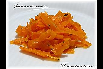 Pour 4 personnes, il vous faut: 500 gr de carottes 2 gousses d'ail 3 cuillères à soupe de jus de citron 3 cuillères à soupe d'huile d'olive coriandre et persil 1 cuillère à café de cumin en poudre 1/2 cuillère à café de paprika sel Pelez les carottes et taillez-les en fines lamelles avec un économe. Blanchissez-les 5 minutes dans de l'eau salée.