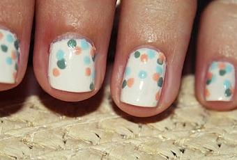 Pour réaliser cette manucure, j'ai utilisé, du blanc comme couleur de base, moi c'est le vernis blanc E.L.F; du vert Thanks a Windmillion O.P.I, le bleu pastel de la collection Claire's et le 080 Sing : Oh Champs Elysées Catrice.Pour faire les petits pois, n'ayant pas encore investit dans un dotting tool, je les fais avec la pointe d'un trombone.