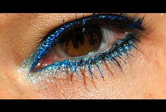 - Définition Waterproof Liner 04 de chez Kiko, - Velvet Touch Eye Liner, Blue Moon, Waterproof, de chez Gosh, - Ess Crayon duo, Glitters gris, - Master Precise, Liquid Liner de Gemey Maybelline, - Effet Faux Cils Volum'Express de Gemey Maybelline.