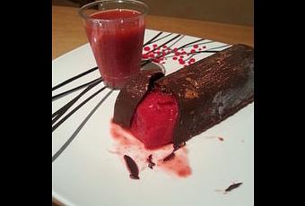 Voici le dessert que j'ai rapporté chez des amis samedi dernier. Le sorbet a été réalisé avec les premières framboises du jardin.