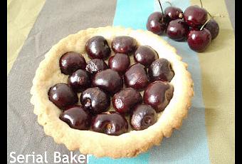 Disposer un fond de poudre d'amande dans chaque tartelette (environ 2 cuillères à café par tartelette). Découper finement la menthe et répartir dans les moules. Laver les cerises (je n'ai pas enlevé les noyaux) et les disposer sur le fond de tarte.