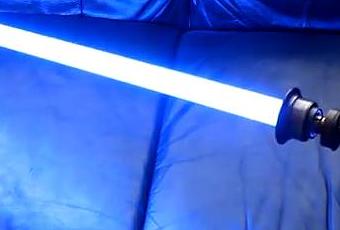 Oubliez les sabres lasers vendus dans le commerce, celui-ci est beaucoup plus sophistiqué. Après 100 heures de travail réparties sur 18 mois, il présente en vidéo son sabre laser fonctionnel, qui n’est autre que celui d’Obi Wan. Il réagit au mouvement du porteur et réalise les sons produits par l’arme (et même de la musique). Pour créer son bijou, il a utilisé un Crystal Focus Saber Core de Plecter Labs, et a équipé la lame de 84 LEDs bleues pour reproduire le plus fidèlement possible les tonalités visuelles du sabre. Le tout est alimenté par deux piles 3,7 volts. Cerise sur le gâteau, le bonhomme a même inclus un vrai cristal dans le manche, enfermé dans une chambre éclairée par des LEDs. Bref, le sabre laser ultime, en attendant les vrais.