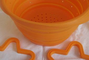 une passoire en silicone pliante et 2 emporte-pièces en silicone