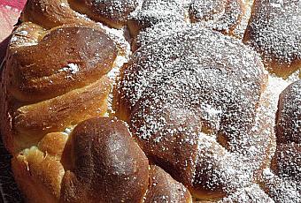 Badigeonnez la brioche avec un mélange de 2 càs de beurre fondu et 1 càc de sucre.