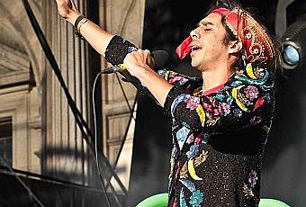Ils s'installent sur une scène habillée de nombreux palmiers gonflables pour l'occasion. Se révèlent parés de strass et de velours, vêtus de couleurs chatoyantes. Sautent dans tous les sens et annoncent qu'ils sont venus "apporter un peu de tropicalité dans la capitale". Voilà les Naive New Beaters.