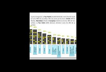 C'est en comptant le nombre de fenêtres encore éclairées dans les tours de la Défense aux alentours d'une heure du matin que le cabinet de conseil a réalisé un classement - actualisé tous les mois - des 20 tours gaspillant le plus d'énergie liée à leur éclairage.