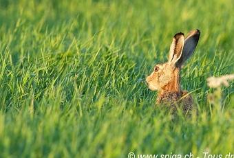 Initialement consacrée au chevreuil, la sortie photo de ce matin dans un de mes « spots » favori dans le Val-de-Travers s’est finalement transformée en rencontre avec le lièvre brun qui m’a honoré d’une visite à quelques mètres de mon affût quelques instants après que le soleil se soit levé. Pendant une quinzaine de minutes, j’ai pu observer ce sympathique mammifère qui ne semblait pas trop inquiété par ma présence.