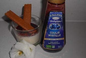 En ce qui concerne le coulis de myrtille St Dalfour, il n'est pas mal, mais très sucré, avec la panacotta qui l'est aussi, ça fait trop !!Je m'en servirai jusqu'au bout mais je n'en rachèterai pas car je n'utilise pas de coulis habituellement.Je l'utiliserai pour mon neveu et ma nièce, ils adorent les galettes au son de blé le matin. Ce coulis me paraît idéal pour accompagner des pancakes ou des crêpes .