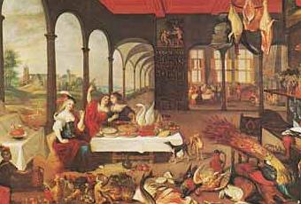 Allégorie du goût . Peinture de l’École de Bruegel de Velours XVI – XVII ° siècle. La Féré, musée Jeanne d’Aboville. Photo Lauros-Giraudon.