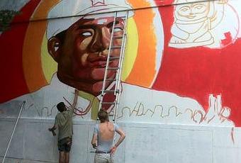 L’association Ever est en action sur le mur depuis jeudi 26 juillet et jusqu’au samedi 28 juillet (soit aujourd’hui, dernière chance pour voir les peintres à l’œuvre)