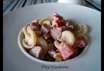 Encore une recette simple, rapide mais qui passe très bien avec cette chaleur! Avec des saucisses "normales" ou des restes de poulet, ... ça marche aussi!