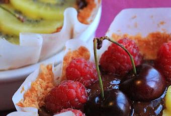 Alors pour débuter, j'ai décidé de réaliser la "Crip Coconut and Chocolate Pie", une tarte à la noix de coco et au chocolat sur laquelle j'ai décidé d'y ajouter quelques fruits. Cette recette est extrêmement simple à réaliser et nécessite seulement 4 ingrédients. Cependant, le croûte de coco est trop cassante à mon goût, la prochaine fois, je vais peut être ajouter un blanc d'oeuf à la pâte pour lui donner plus de consistance.