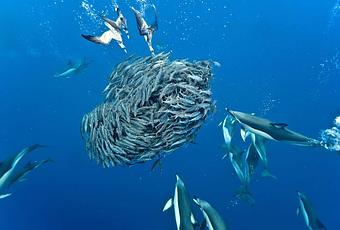 ennemis, mais cette fois la pression des prédateurs est trop forte. Attaqués en bas par des dauphins et en haut par des puffins cendrés, ils n'ont aucune chance. Cette impressionnante «matanza»