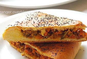 Laisser reposer 20 minutes, badigeaonner avec du lait et saupoudrer aec des graines de pavôt ou sésame avant d'enfourner à 200 ° jusqu'à ce que la tourte soit bien dorer.