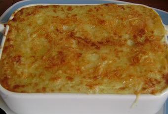 4) Recouvrir le tout de purée maison, saupoudrer de fromage râpé.