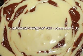 Versez un peu de votre pâte blanche au centre de votre moule. La pâte va couler légèrement et former un petit cercle. Versez au centre de ce cercle de la pâte au Nutella, puis la blanche.. et ainsi de suite jusqu'à épuisement des pâtes. Vous verrez les pâtes s'étaler au fur et à mesure que vous rajoutez une couche. Les deux couleurs vont ainsi se superposer.