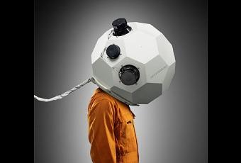 À l’intérieur du casque qui ressemble à celui d’un scaphandrier, il y a un moniteur encastré devant les yeux de l’utilisateur, quatre haut-parleur pour les graves, et deux pour les aigus. L’amplificateur est monté à l’extérieur.