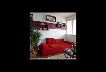 Un nouveau look design pour ce salon qui avait vécu la classique accumulation de meubles sans cohérence au fil du temps. La demande : nombreux rangements, désencombrement, harmonisation, modernisation tout en restant chaleureux. La réponse: 2 meubles sur mesure pour accueillir toute la vaisselerie et pour cacher complètement la TV. Le sublime canapé Vitra se suffit pratiquement à lui même et le jeu graphique des casiers apportent le reste de rayonnages en sortant des conventions de bibliothèques classiques. Un vrai nouveau look je pense…
