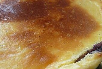 Placer la crème sur la pâte aux myrtilles et enfourner pour 20 mn en surveillant bien que le dessus ne devienne pas trop brun.