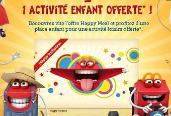 Le menu Happy Meal, propose pour son achat de bénéficier d’une activité loisirs offerte.