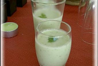 - Ajouter les feuilles de menthe, le fromage blanc et la gousse d'ail