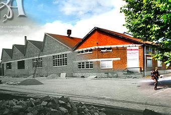 Photo de la construction d'un grand garage à proximité des entrepôts Goulet-Turpin du quartier Vernouillet . La construction du garage a été réalisée sans un seul pylône, ce qui lui donnait une très grande capacité d’accueil . Une rareté en France à cette époque. Le bâtiment a directement été occupé par l'armée Allemande dès son entrée à Reims durant la Seconde Guerre mondiale. Longtemps auparavant, ce bâtiment très stratégique avait été repéré et signalé par ce que l'on appelait "la Cinquième colonne" .