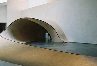 Skateable est une installation sculpturale de Rich Holland qui s’intègre dans l’exposition au Kiasma Museum of Modern Art en Finlande. Une installation basée sur la courbe, la ligne et l’espace, qui colle bien à l’idée de « sculpture patinable » (ou « skatable » en franglais). L’oeuvre est en effet digne d’une rampe de skateboard. Le musée ne dit pas si les rollers et les skateboards sont admis dans l’exposition. A votre avis ?