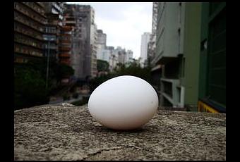 «Cette série de photographies est née d'un jeu traditionnel du Sud du Brésil. Quand le climat est nuageux ou pluvieux, la tradition veut que l'on prie Santa Clara et que l'on pose un œuf sur un mur afin que le jour suivant soit lumineux et ensoleillé. Je me suis inspiré de cette histoire pour partir dans les rues, un œuf dans une main et mon appareil photo dans d'autre. Cette capsule contenant la vie est devenue mon objet d'art. La vie n'est-elle pas elle-même une forme d'art ?