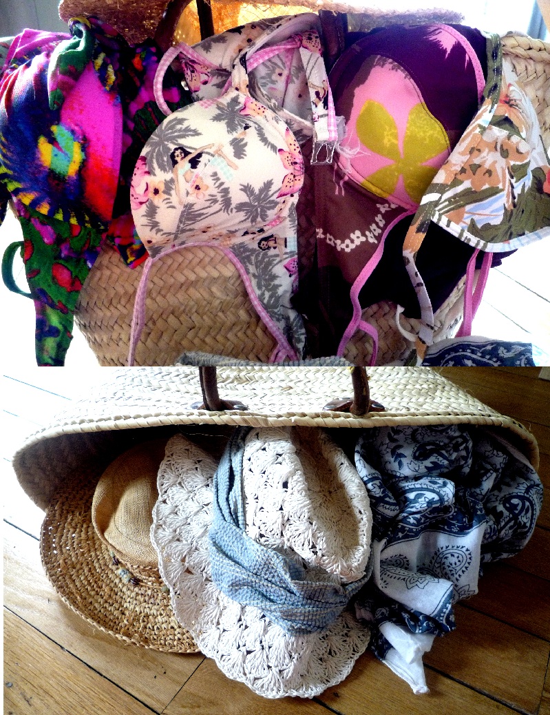 Maillots Asos et Princesse Tam Tam et panier et chapeaux rapportés de vacances