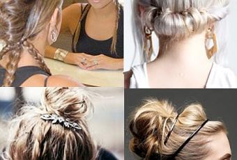 Ensuite des looks plus romantiques, en enroulant ses cheveux sur les côtés, surement en faisant des petites torsades et on les accroche en bas, ou bien en les rentrant grâce à un élastique serre-tête. D’ailleurs en parlant de serre-tête, j’adore en mettre avec les cheveux attachés avec un petit chignon en hauteur, je trouve ça très sympa et puis au moins, pas de cheveux dans les yeux !!!