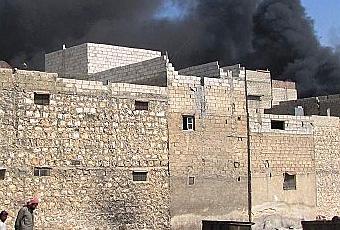 Les deux avions font plusieurs passages et frappent ; des explosions retentissent dans un quartier voisin. Mais ce n’est pas nous qui sommes visés : il s’agit du quartier d’al-Barry, tenus par les partisans de la famille du même nom, soutien du régime (un de ses membres, Hassan Chabaan, appartient au parlement, précise un jeune milicien). Environ deux cents Shabihas, soutenus par une vingtaine de combattants du Hezbollah, s’y trouvent encerclés par l’ASL ; l’aviation essaie de les désenclaver en frappant les positions des rebelles.