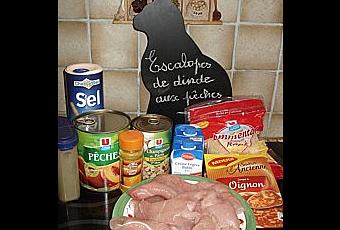 . Recouvrez les escalopes avec les dés de pêche et les champignons.