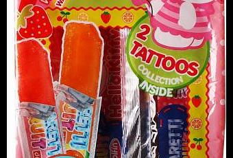 Depuis plusieurs années , cette marque commercialise un peu partout en Europe des glaçons avec Hello Kitty sur le packaging , et à l'intérieur , en cadeau , des tatouages à collectionner ! Pour cet été , les glaçons Polaretti fruit Dolfin sont vendus avec une adorable trousse Hello Kitty qui existe en 3 coloris ; vert , jaune ou rose ! J'avais déjà vu ces glaçons en Espagne et en Allemagne , et c'est en Suisse hier , que j'ai découvert ces trousses !