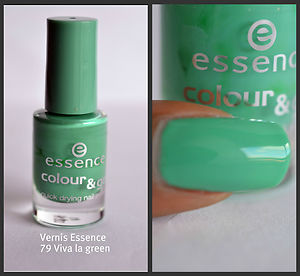 Number two: Le vernis "79 Viva le green" de Essence. Comme le vernis mavala, très facile application, une seul couche suffit, et le vert de se vernis est Ouah! Je le trouve sublime pourtant j'en ai des verts ( du clair au plus foncé) mais celui-ci est vraiment sublime. Il convient au printemps, été, automne, hiver! Il va avec tout! Acheter en Allemagne à 1,30 euros.