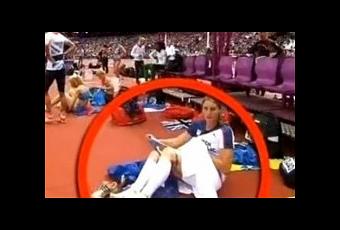 Eliska Klucinova qui participe à l’épreuve de l’heptathlon lors des Jeux Olympiques de Londres a été filmée pendant qu’elle enlevait sa petite culotte !