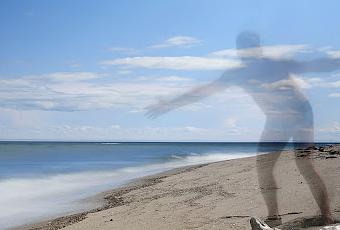 J’ai utilisé un filtre densité neutre pour réaliser cette photo. Étant donné la grande fermeture du diaphragme, la vitesse lente et le retardateur me permettent d’apparaître tel un fantôme dans la photo.
